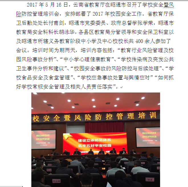 2017年昭通市學校安全暨風險防控管理培訓會