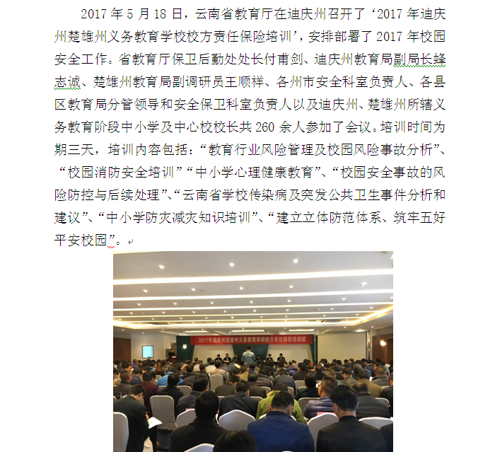 2017年迪慶州、楚雄州義務(wù)教育學(xué)校校方責(zé)任保險(xiǎn)培訓(xùn)會(huì)