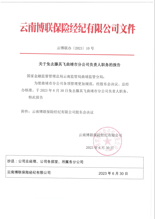 關(guān)于免去滕其飛曲靖市分公司負(fù)責(zé)人職務(wù)的報(bào)告