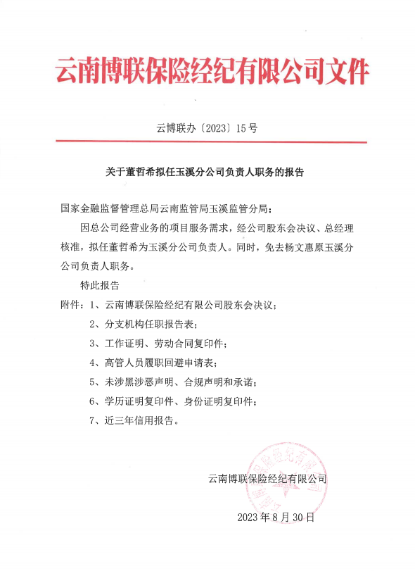- 云南博聯(lián)保險(xiǎn)經(jīng)紀(jì)有限公司關(guān)于變
