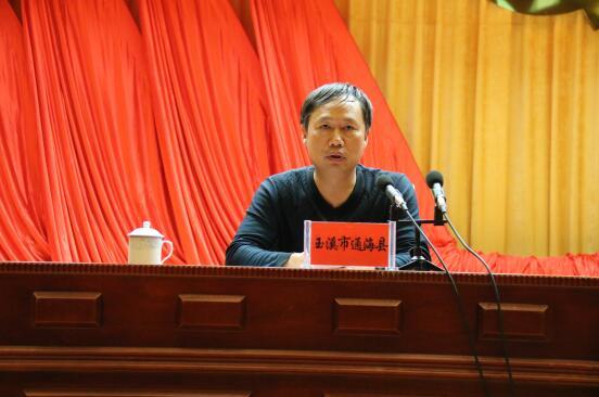 通海縣人大常委會主任、政法委書記陳文存在會上交流匯報(bào)